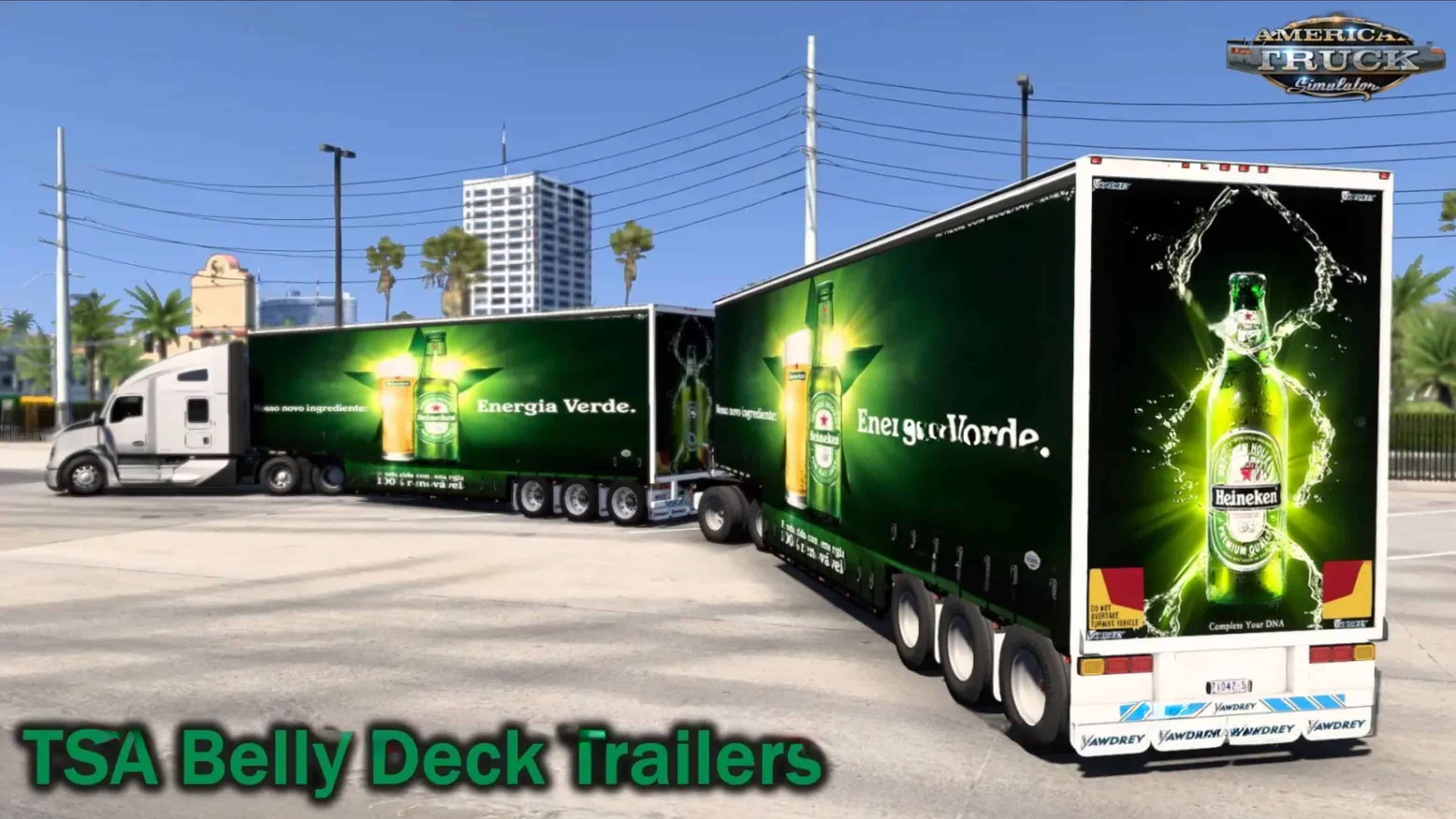 TSA Belly Deck Trailers for ATS – is a realistic representation of a belly deck trailer, designed to carry large and heavy loads. This trailer is perfect for hauling oversized and heavy cargoes, such as construction equipment, wind turbines, or even military equipment. The trailers are designed with high attention to detail, reflecting real-world specifications and appearances. This includes accurate dimensions, textures, and components like axles and landing gear.