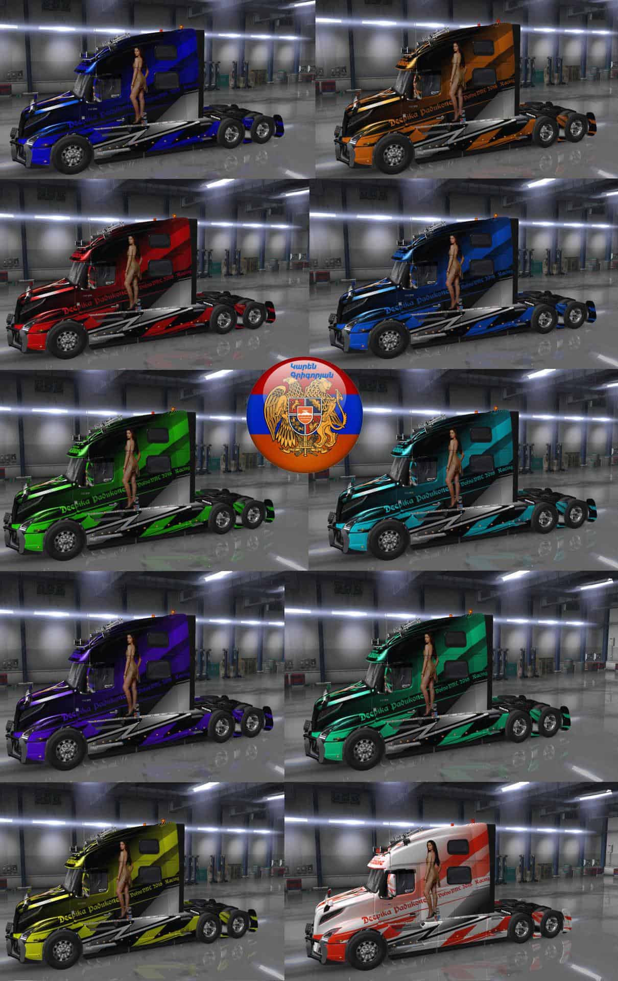 I bring to your attention a high-quality; skin pack; Metallic racing version 3 for Volvo truck VNL 2018. In the pack of ten skins of different colors.