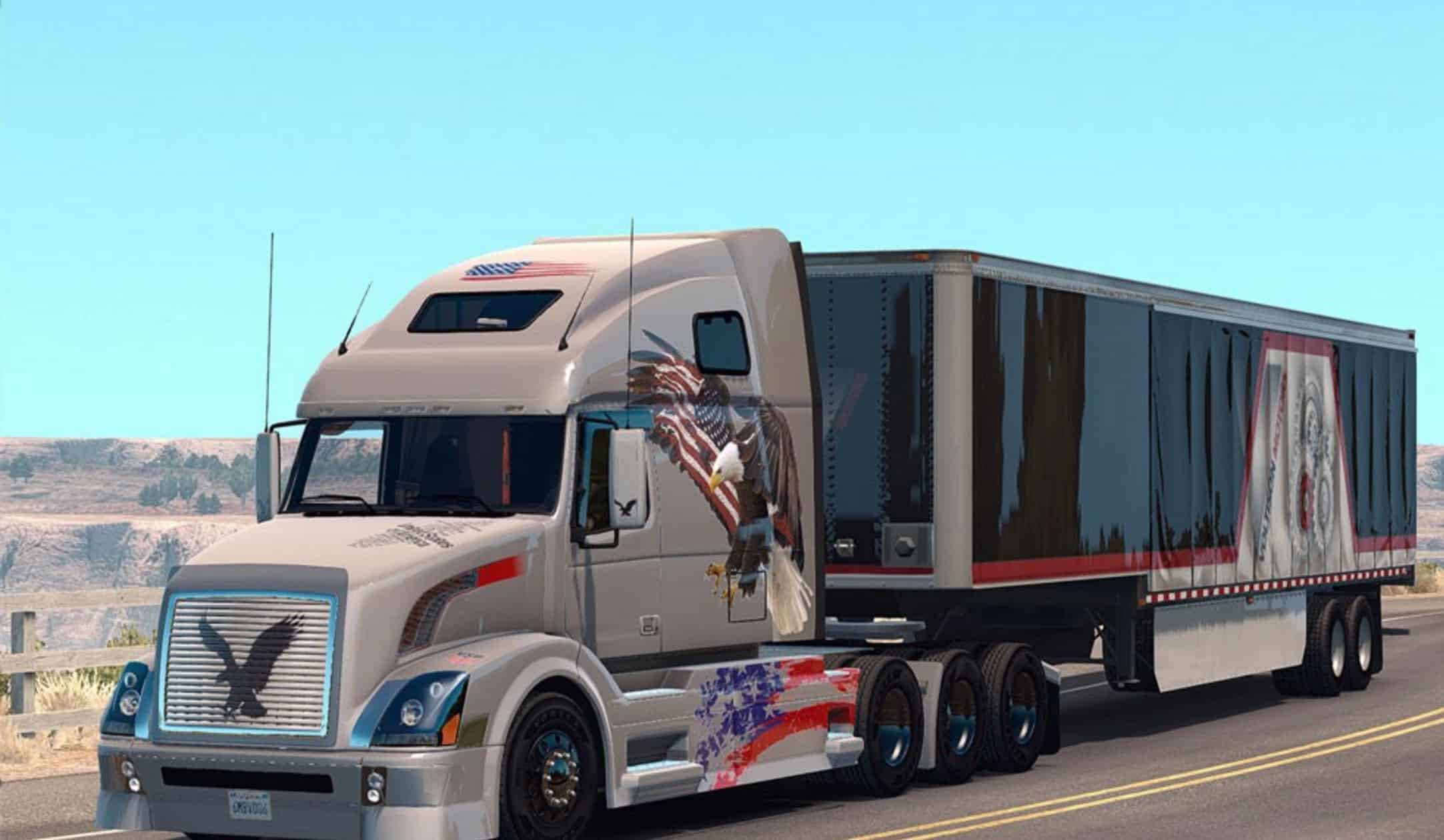If you enjoy experiencing real American Truck driver life, but at the same time feel a bit bored of the common road, cargos, and trucks, then American Truck Simulator Mods are for you! Step into an American Truck Simulator Driver's shoes and prove that you can deliver the cargo under any circumstance. It is the easiest way to get the best of the game, your opponents will be surprised! Then all you need to do is simply click on American Truck Simulator Volvo VNL 670 USA Eagle Skin by Aradeth Mod Mod free download button and implement it to your game.