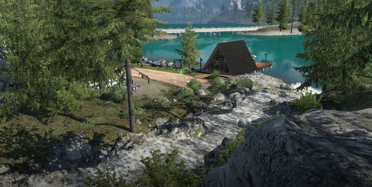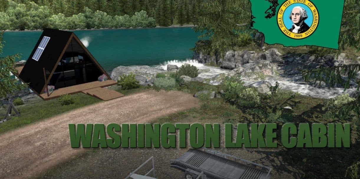 This is a map edit that adds an offgrid lake cabin in northern Washington that functions as a purchasable garage where you can store trucks and trailers.
