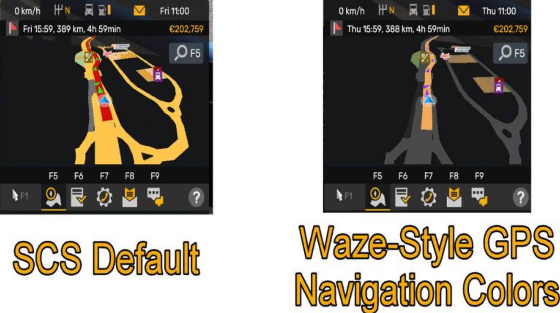 Tired of the default ETS2 GPS colors that look outdated or too bright for night drives? This mod transforms your GPS and map visuals into a modern, sleek dark-mode interface inspired by Waze and Google Maps night themes. Whether you’re hauling across Europe at dusk or managing fleets under moonlight, this mod improves clarity, realism, and comfort-without sacrificing immersion.