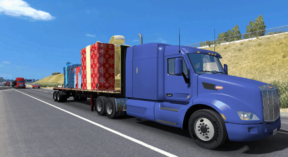 If you enjoy experiencing real American Truck driver life, but at the same time feel a bit bored of the common road, cargos, and trucks, then American Truck Simulator Mods are for you! Step into an American Truck Simulator Driver's shoes and prove that you can deliver the cargo under any circumstance. It is the easiest way to get the best of the game, your opponents will be surprised! Then all you need to do is simply click on American Truck Simulator Xmas Gifts Trailer in Traffic ATS Mod free download button and implement it to your game.